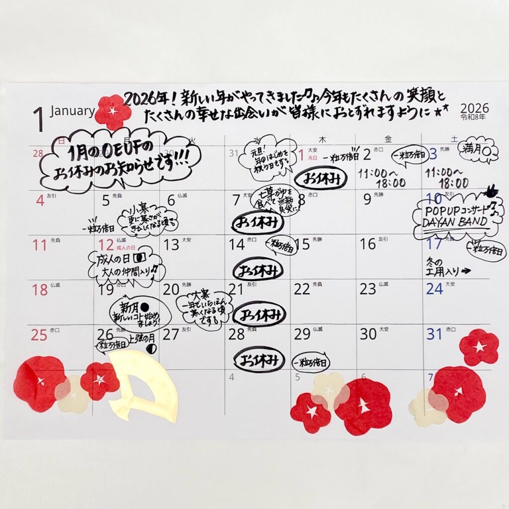 2026年始まっておりますが、1月のお休みのお知らせです✨